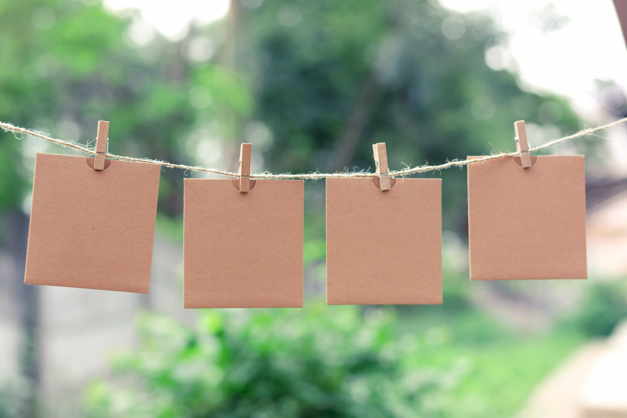 Trek geblindoekt een kaartje van een waslijn om zo een opdracht of raadsel te krijgen.