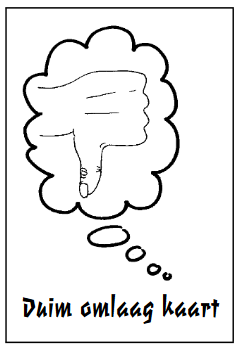 - 1 stapel met de overige ‘duim omhoog en duim omlaag’-kaarten, die door elkaar geschud zijn