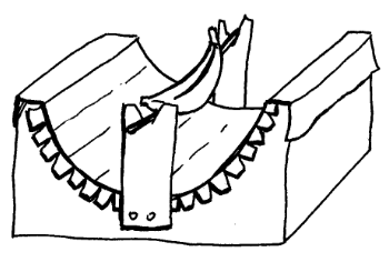 Je knipt uit de beide lange kanten van een schoenendoos een halve cirkel. Het is belangrijk dat de verhouding tussen hoogte en breedte 1 : 2 is. Je kunt hiervoor ook onderstaand patroon vergroten. Daarna beplak je een stuk stevig papier of karton met aluminiumfolie. De grootte van het karton moet de breedte van de schoenendoos en de lengte van de halve uitgesneden cirkel zijn. Probeer er voor te zorgen dat je de folie zo strak mogelijk en zonder kreukels op het karton bevestigd. Je plakt hierna het midden van het met folie beplakte karton vast in het midden van de uitgesneden halfronde vorm in de schoenendoos. Hierna buig je voorzichtig het karton en plak het aan de bovenzijde vast. Hierdoor krijg je een halfronde vorm.