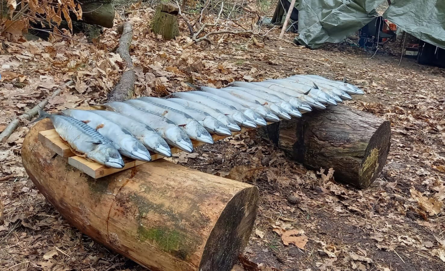 Rook vis in een zelfgemaakt rookblik met rookmot.