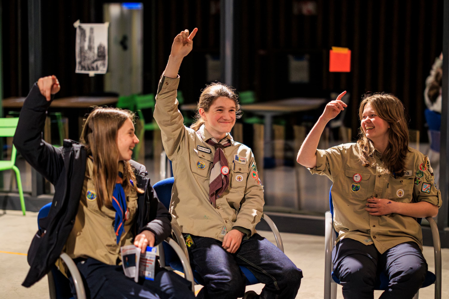 Geef de deelnemers uitleg over het begrip jeugdparticipatie zonder het woord te noemen. Vertel over het meepraten van jeugdleden, de invloed in beslissingen binnen en buiten de speltak. Dat het heel klein kan zijn, zoals het eten op kamp, maar ook heel groot zoals de indeling en aankleding van hun lokaal en alles daartussen en eromheen.
