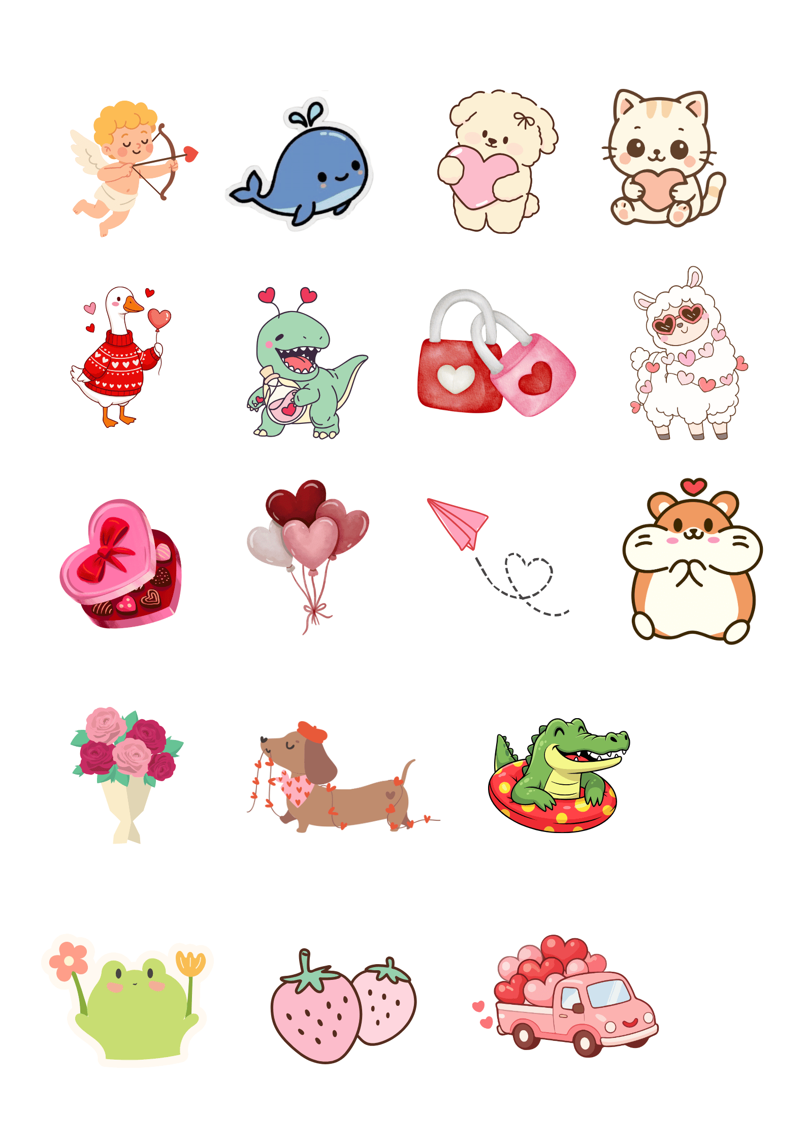 - Kaartjes met figuurtjes die met valentijn te maken hebben