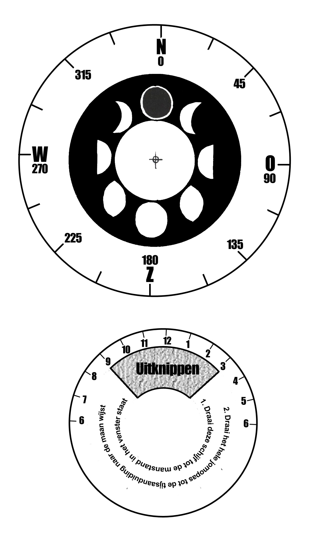 Zoals er een zonnetijd-kompas bestaat, is er ook een maankompas, dat je als volgt maakt: