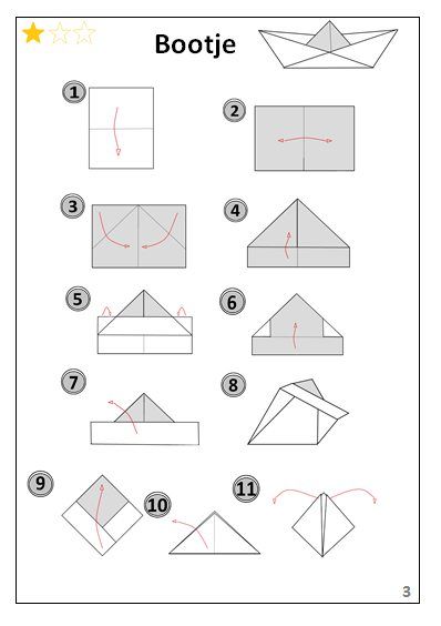 - Zie bijlage van een voorbeeld hoe je een bootje vouwt.