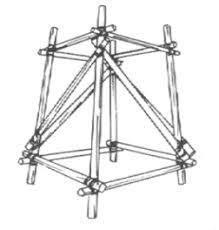 Bouw een kubusvormige toren door 4 palen verticaal omhoog te zetten in een vierkant en verbind die met dwarsbalken bovenin, onderin en zo nodig halverwege. Zorg ook voor voldoende diagonale verbindingen (voorbeeld).