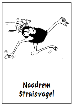 - 1 ‘noodrem-struisvogel’-kaart en 1 ‘hollende- struisvogel’-kaart