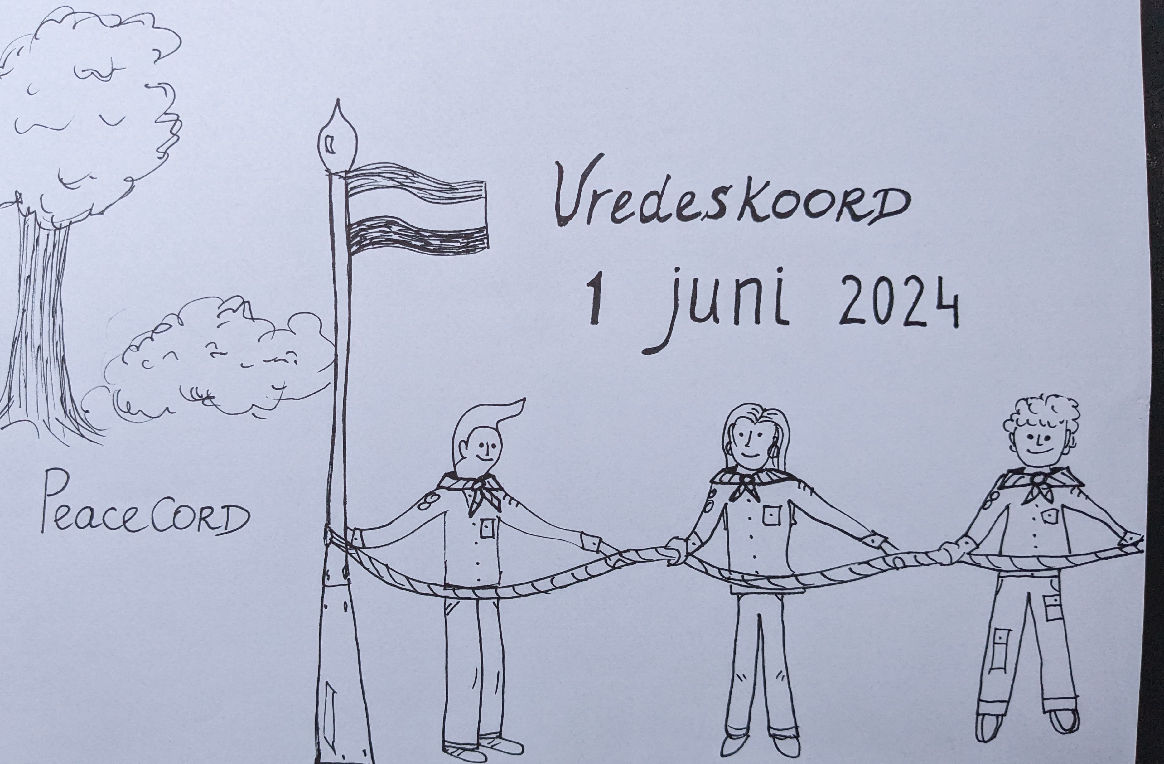 Samengevoel creëren door op 1 dag, namelijk op 1 juni, met zoveel mogelijk scoutinggroepen een menselijk koord te vormen met piotouw vasthoudend. Zie de tekening. Dan een foto naar wens te delen hiervan op social media en/ of lokale media.