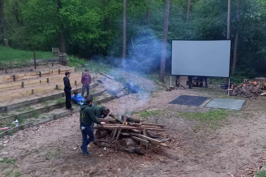 Een buitenbioscoop past goed op kamp als rustige avondactiviteit voor explorers of roverscouts. Het leuke is dat de deelnemers niet alleen een film kijken, maar ook eerst zelf de bioscoopplek opbouwen. Daardoor wordt het meer dan alleen “een scherm neerzetten”: de groep kiest een handige plek, denkt na over de opstelling en zorgt dat alles klaarstaat voordat het donker wordt.