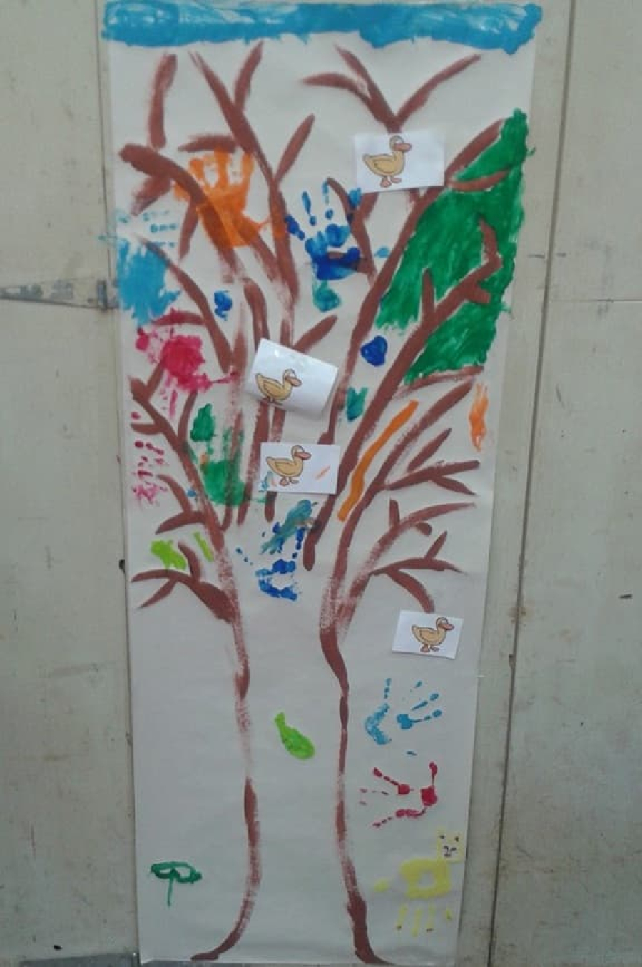 Vervorm samen met je handen en voeten de kleurrijke toekomstboom van Hotsjietonia vol dieren en fantasie.