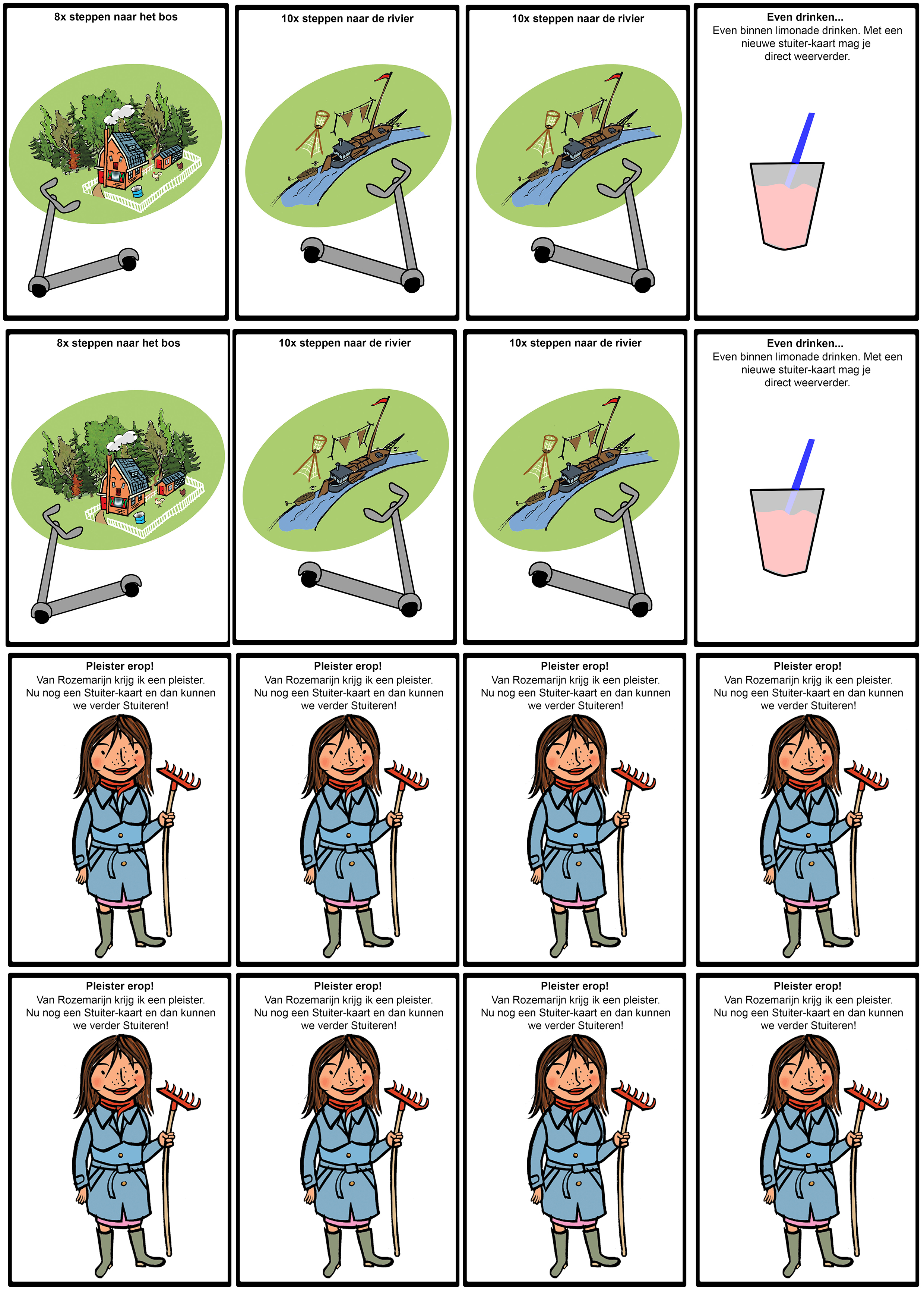 - '10x steppen naar de rivier' (2x nodig, 8 kaartjes in totaal)