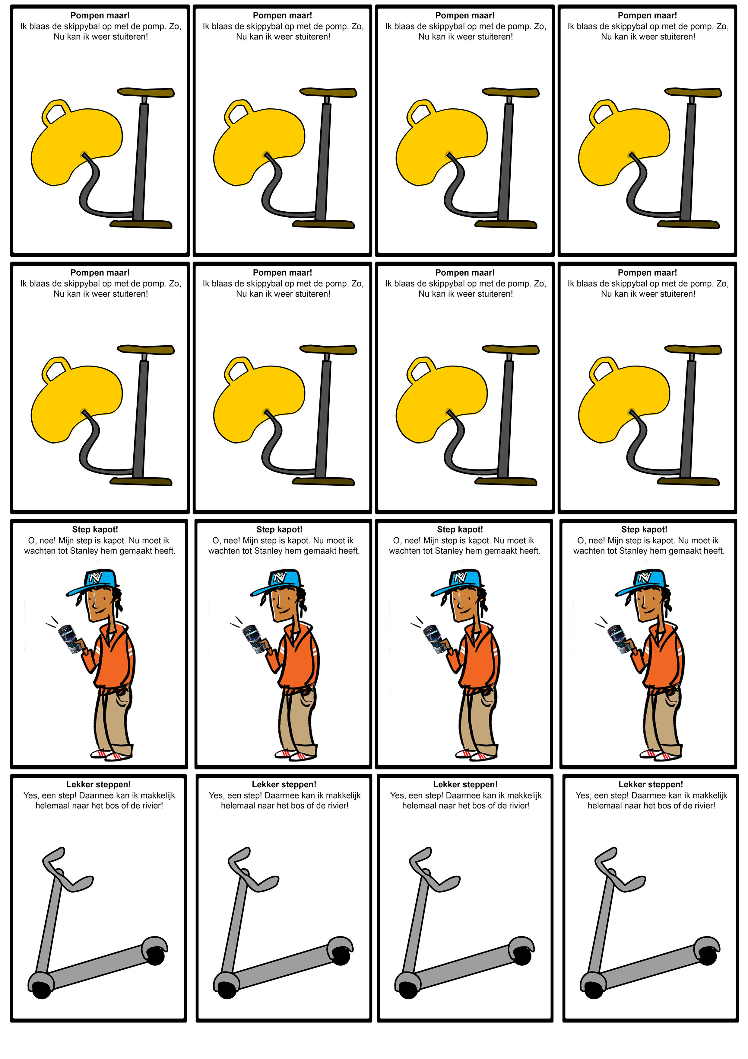- '8x steppen naar het bos' (2x nodig, 8 kaartjes in totaal)
