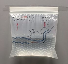 - Stap 1: teken de waterkringloop op de buitenkant van je plastic zak. Het voorbeeld kan je helpen!