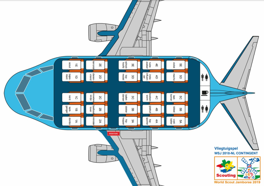 Jullie moeten de 25 personen op de goede locatie in het vliegtuig zetten. Dit doe je door de profielkaartjes op de stoelen te leggen. De aanwijzingen van de cabin crew staan vermeld op de stoelen. Veel succes!